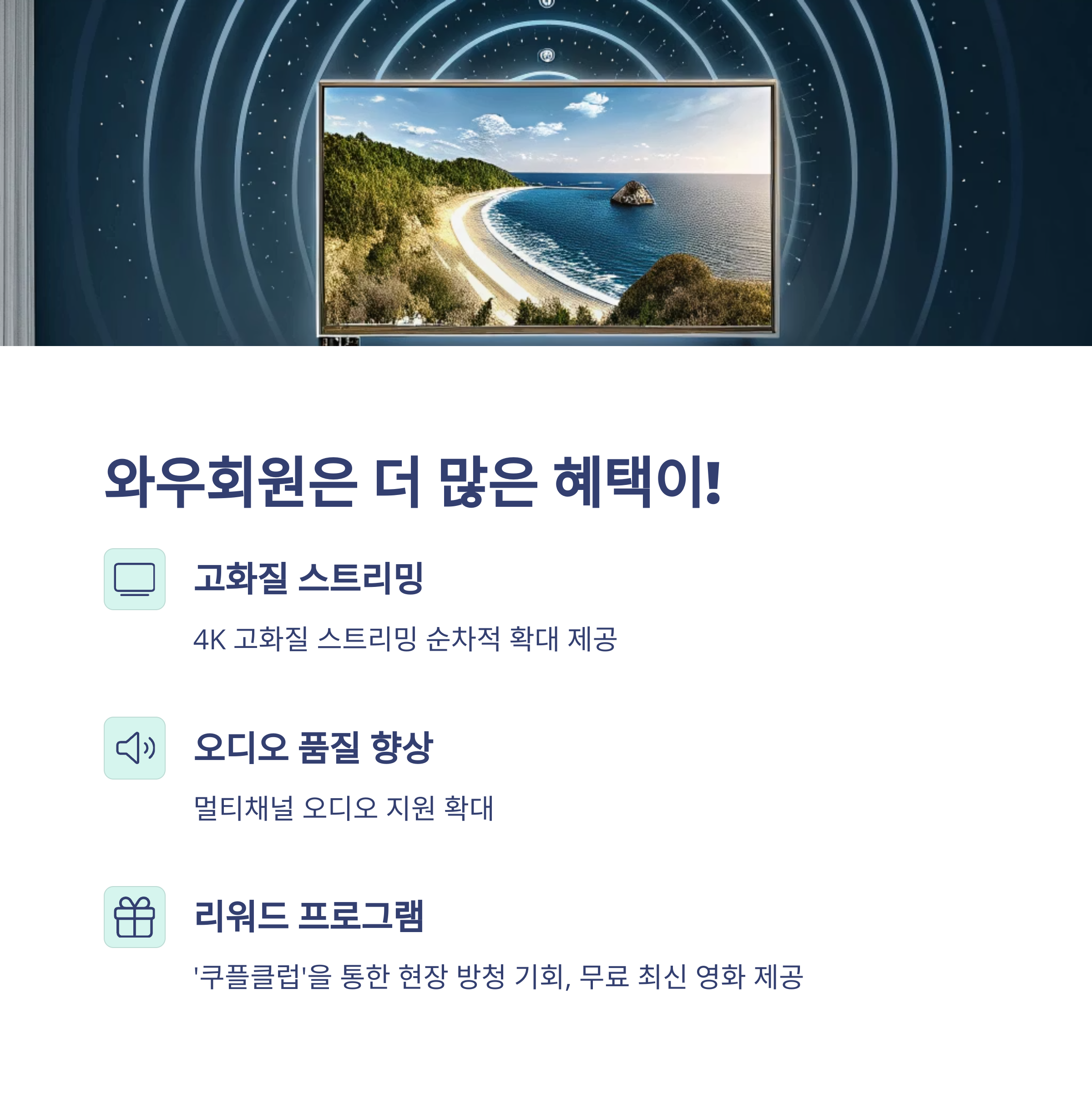 쿠팡플레이는 이번 무료 회원제 도입과 함께 와우회원 전용 혜택도 한층 강화할 계획입니다. 일부 콘텐츠에 한해 제공되던 4K 고화질 스트리밍은 더욱 확대되고, 멀티채널 오디오도 더 많은 콘텐츠에 지원됩니다. 여기에 쿠플클럽 리워드 프로그램을 통해 방청 기회, 최신 영화 무료 제공 등도 계속 이어진다고 하니, 기존 와우회원들도 충분한 혜택을 체감할 수 있을 것으로 보입니다.